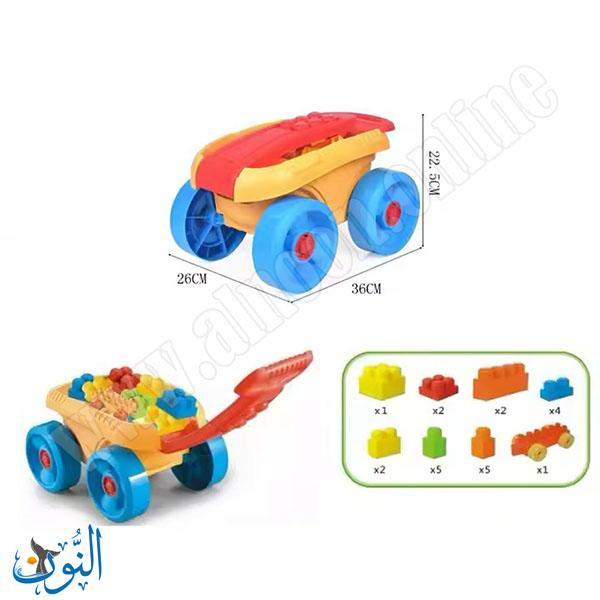 عربة مكعبات بناء للأطفال، 22 قطعة بناء بلاستيكية ملونة .