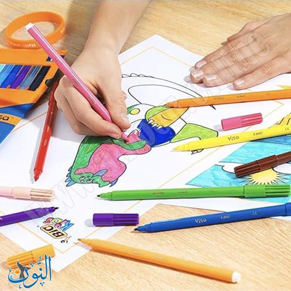 تقدّم مجموعة BIC Visa ألوان فلوماستر مكوّنة من 18 لونًا متنوعًا يمنحك طيفًا واسعًا من الألوان الزاهية للتلوين والرسم الإبداعي. تتميز هذه الأقلام بأحبار قوية اللون تنساب بسلاسة على الورق، مع رؤوس دقيقة تُسهّل التحكم في التفاصيل الصغيرة والتلوين واسع المساحة على حدٍ سواء. صُمّمت الأقلام بجسم خفيف ومريح يوفر راحة وثباتًا أثناء الإمساك والاستخدام، مما يجعلها خيارًا مثاليًا للطلاب، والفنانين الهواة، وأعمال التلوين في المدرسة والمنزل.