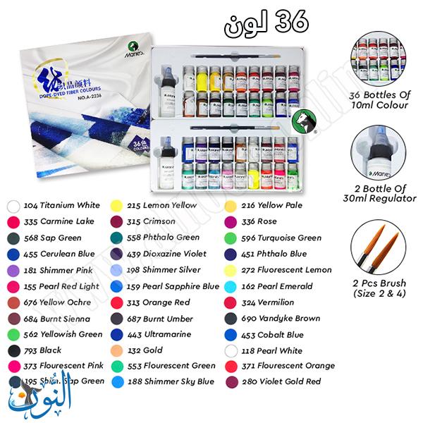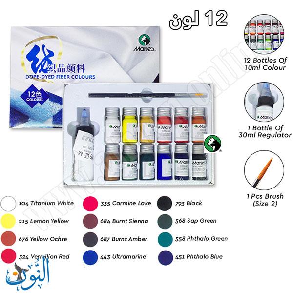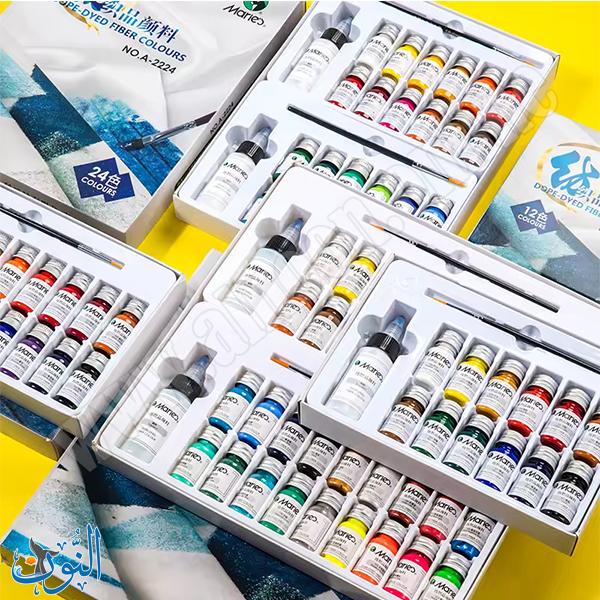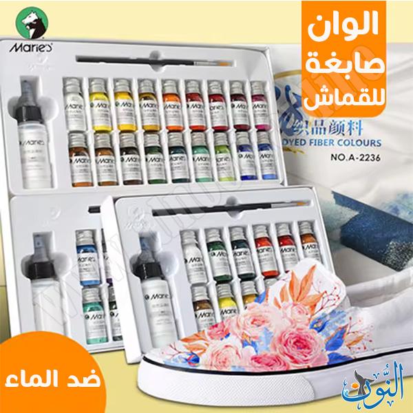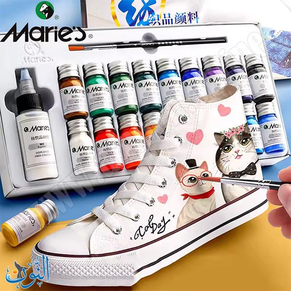 نرجع للاسلوب الاول | مجموعة ألوان أكريليك مائية من شركة ماريس (Maries)، مخصصة للرسم اليدوي على الأقمشة. تتميز بتركيبة صبغية عالية الجودة مقاومة للماء، لا تتلاشى بعد التثبيت، مما يجعلها مثالية لتزيين الملابس، الأحذية، الحقائب، وأغلب أنواع الأقمشة الطبيعية مثل القطن والكانفاس.