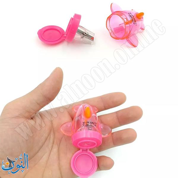 براية بلاستيك مزودة بحاوية لتجميع بقايا البري بتصميم على شكل طيارة، تحتوي على عجلة للتحكم بدرجة الشحذ بثلاثة مستويات مختلفة، تساعد على شحذ الأقلام حسب الحاجة مع الحفاظ على النظافة ,
