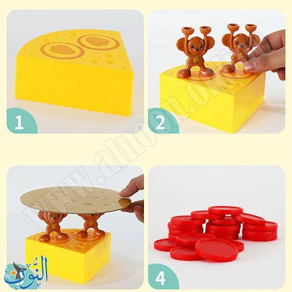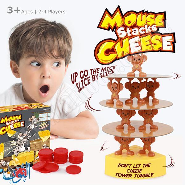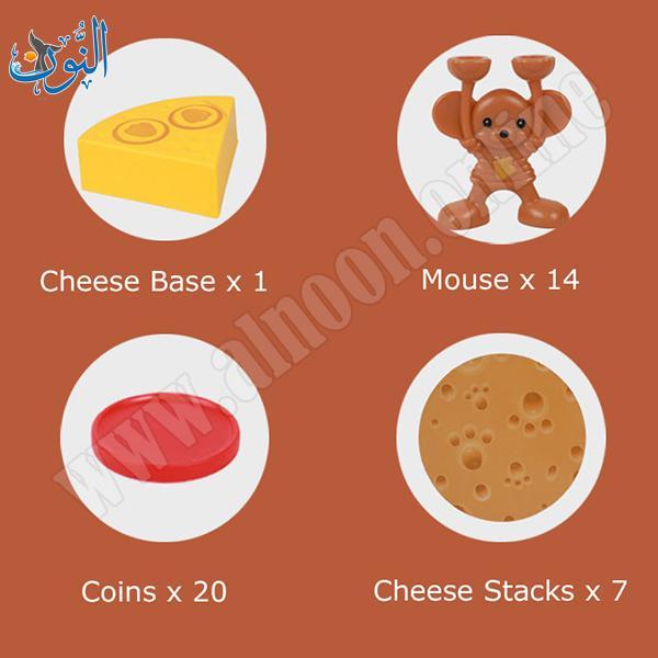 لعبة برج الجبن والفئران , هي لعبة توازن وتحدي استراتيجي مصممة لتطوير المهارات الحركية الدقيقة، التركيز، والتخطيط عند الأطفال. تتكون المجموعة من قاعدة على شكل قطعة جبن (مقاس 27 × 26.5 × 6 سم تقريبًا)، 7 شرائح جبن قابلة للتكديس، 14 فأرًا صغيرًا، و20 رمزًا للتسجيل. طريقة اللعب: يبدأ اللاعبون ببناء البرج عبر وضع فأرين على الدوائر المخصصة في القاعدة، ثم إضافة شريحة جبن واحدة، مع الاستمرار بالتناوب في إضافة الفئران وشرائح الجبن مع الحرص على توازن البرج الذي يزداد صعوبة مع ارتفاعه. إذا سقط البرج خلال دور لاعب، يحصل على رمز، والفائز هو من يبني أطول برج دون جمع 3 رموز. جميع القطع مصنوعة من مواد آمنة غير سامة ومطابقة لمعايير السلامة الأوروبية EN71 وCE. تناسب 2-4 لاعبين من عمر 6 سنوات فما فوق، وتُعد خيارًا مثاليًا للألعاب العائلية، حيث تجمع بين التشويق والتحدي الذهني في تجربة تفاعلية ممتعة.