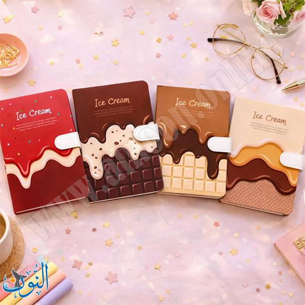 دفتر ملاحظات أنيق بقياس A6 يتميز بتصميم لطيف مستوحى من الحلويات والشوكولاتة (تصاميم متنوعة)، يمنحك لمسة جمالية مميزة أثناء الاستخدام. يأتي مع إغلاق مغناطيسي يحافظ على الدفتر مغلقًا بشكل آمن، بالإضافة إلى غلاف مقوى فاخر يوفر حماية ومتانة عالية.
