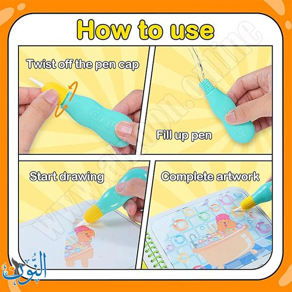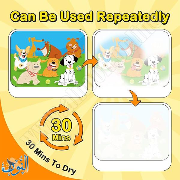 دفتر الرسم المائي السحري للأطفال يقدم تجربة تلوين ممتعة وآمنة دون الحاجة لألوان تقليدية. يأتي الدفتر مع قلم يجب تعبئته بالماء قبل الاستخدام، وعند التلوين تظهر الألوان على الصفحات مباشرة. بعد حوالي 30 دقيقة من الجفاف، تعود الصفحات إلى اللون الأبيض، مما يسمح بإعادة التلوين مرات متعددة. هذا الدفتر مثالي لتطوير مهارات الإبداع والتنسيق بين اليد والعين لدى الأطفال بطريقة نظيفة وآمنة، ويحفزهم على ممارسة الرسم والتلوين دون فوضى أو استخدام مواد إضافية.