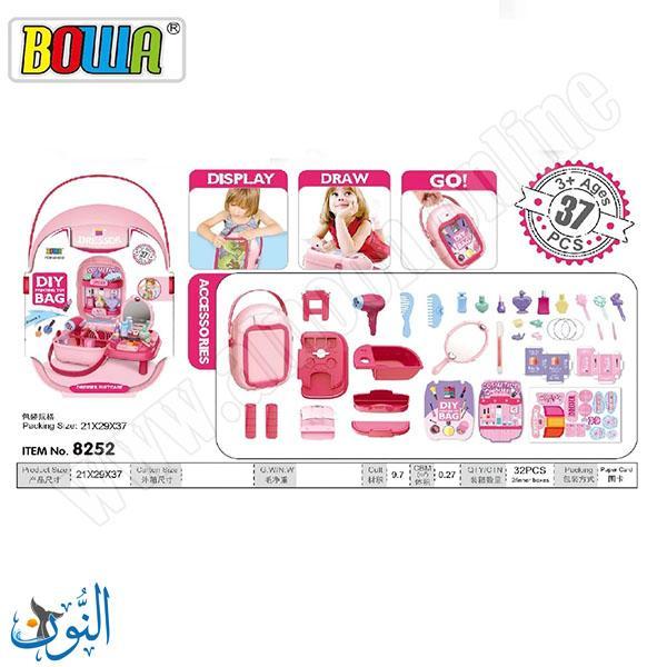 تقدم ماركة BOWA حقيبة تصفيف شعر محمولة متكاملة للفتيات تحتوي على 37 قطعة من أدوات التجميل والعناية بالشعر الوهمية. تتضمن المجموعة أدوات محاكاة واقعية مثل مجفف الشعر، فرش التصفيف، المشابك، الإكسسوارات الشعرية الملونة، ومرآة محمولة، مصممة جميعها لتشجيع اللعب التخيلي الإبداعي. تساعد هذه المجموعة على تنمية المهارات الفنية والإبداعية من خلال تمارين تصفيف الشعر وتنسيق الإكسسوارات، مع تطوير التنسيق الحركي الدقيق. تتميز الحقيبة بتصميم منظم يتيح تخزين القطع بترتيب وسهولة حملها. جميع المكونات مصنوعة من مواد بلاستيكية عالية الجودة غير سامة وآمنة للاستخدام، مما يجعلها هدية مثالية لتطوير التعبير الإبداعي واللعب الخيالي بأمان.