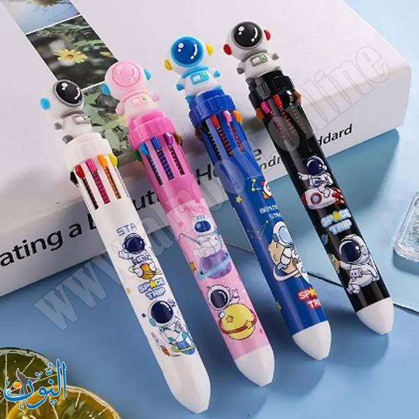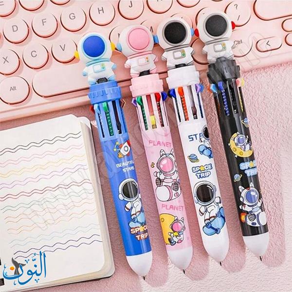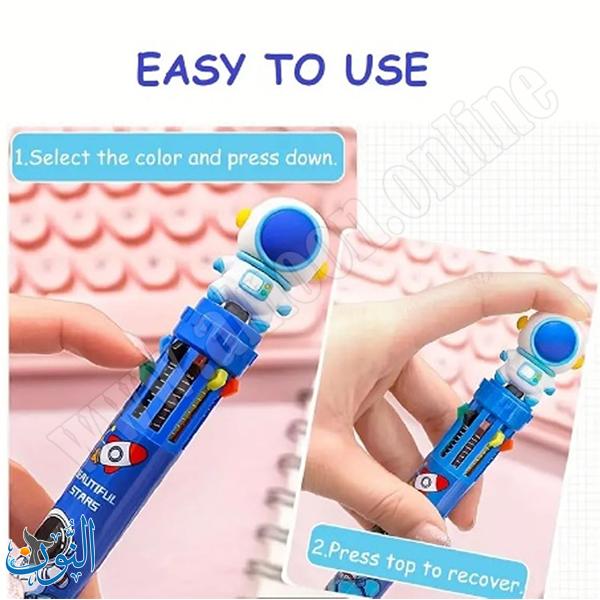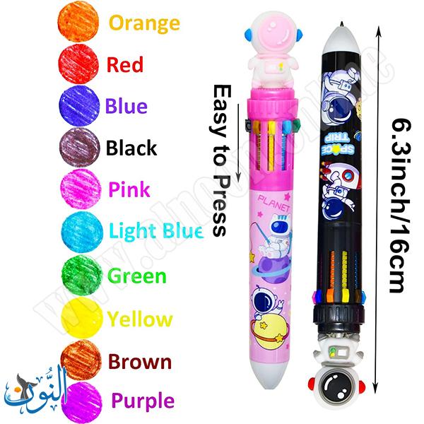 قلم حبر عملي ومميز يجمع بين 10 ألوان مختلفة في قلم واحد، مما يوفر تجربة كتابة ممتعة ومتنوعة دون الحاجة لتبديل الأقلام. يأتي بتصميم كرتوني على شكل رائد فضاء يجذب الأطفال ويضيف لمسة مرحة. مزود بآلية ضغط (Push Button) سهلة الاستخدام للتنقل بين الألوان بسرعة وسلاسة. يتميز برأس كتابة دقيق 0.5 مم يمنح خطوطًا واضحة ونظيفة، مما يجعله مناسبًا للمدرسة، الرسم، وتدوين الملاحظات. يباع القلم كقطعة واحدة (لون أو تصميم عشوائي)، وهو خيار رائع كهدية للأطفال في المناسبات المختلفة