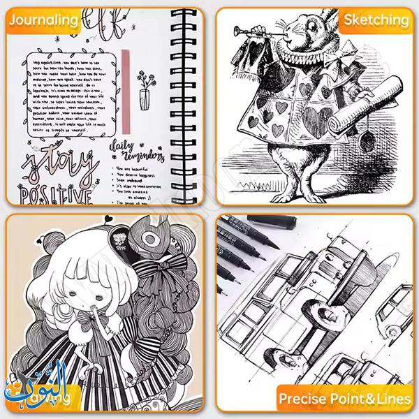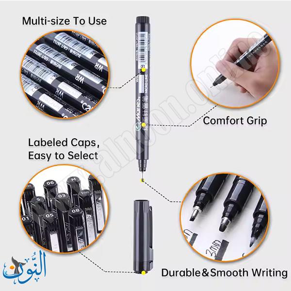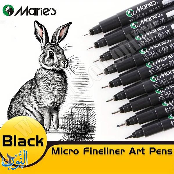 أقلام Needle Pen من ماريس (Maries) تأتي بحبر أسود مقاوم للماء، لا يلطخ، ولا يتأثر بالكحول أو العوامل الخارجية، مما يضمن ثبات الخطوط ووضوحها بمرور الوقت. تُستخدم هذه الأقلام في مجموعة واسعة من التطبيقات مثل التصميم، الكتابة، الرسم اليدوي، القصص المصوّرة، والخطوط الدقيقة (Hook Line)، وتوفر تدفق حبر سلس وسريع الجفاف. تتوفر بثلاثة مقاسات مختلفة: 1 ملم، 2 ملم، و3 ملم، لتلبية احتياجات الفنانين والمصممين في الرسم والتحديد والتظليل بدقة. يتميز تصميم القلم بقبضة مريحة تقلل من إجهاد اليد أثناء الاستخدام الطويل، كما أن الغطاء مصنوع من البولي بروبلين مع سن إبرة من الفولاذ المقاوم للصدأ لحماية رأس القلم ومنع جفاف الحبر