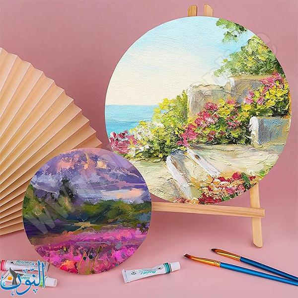 لوحة قماش دائرية من ماريس (Maries) بقطر 30 سم، مصنوعة من قطن 100% بسماكة 380 غرام، مطلية بطبقة أكريليك وجاهزة للرسم مباشرة بالألوان الزيتية أو الأكريليك، ومشدودة على إطار خشبي متين يضمن ثباتًا وأناقة في العرض.