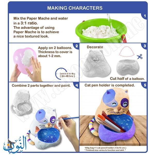 ورق معجون (Paper Mache) عالي الجودة مصنوع من لبّ ورق نقي مع غراء مدمج، مما يجعله سهل التحضير والاستخدام. يتم خلطه مع الماء بنسبة 3:1 للحصول على قوام مثالي، ويساعد على تحقيق ملمس ناعم وجذاب في الأعمال الفنية. بعد الجفاف، يمكن تلوينه باستخدام ألوان الأكريليك أو الألوان المائية (Poster Paints) للحصول على مظهر نهائي متقن. المنتج مصنوع من لبّ ورق نقي لا يحتوي على أي آثار حبر، كونه غير مصنوع من ورق معاد تدويره، مما يجعله آمنًا تمامًا للأطفال. مدة الصلاحية التقريبية تصل إلى سنتين. الوزن: 100 غم