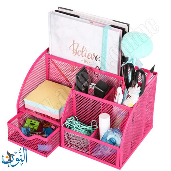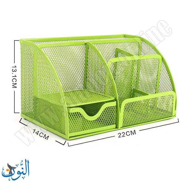 منظم مكتب معدني عملي مزود بدرج سفلي، مصنوع من الحديد الشبكي المتين الذي يوفر تهوية جيدة ومتانة عالية للاستخدام اليومي. يساعد على ترتيب الأقلام والأدوات المكتبية والمستندات بشكل منظم وأنيق، مما يحافظ على سطح المكتب مرتبًا وسهل الوصول إلى المحتويات. متوفر بخمسة ألوان مميزة: الأسود، الأخضر، الزهري، الأزرق، والفوشي، ليتناسب مع مختلف الأذواق والمساحات المكتبية.