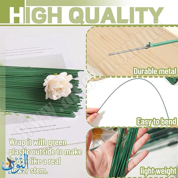 سلك معدني أخضر مخصص لتنسيق الزهور والأعمال اليدوية، بطول 40 سم وسماكة 1.2 مم، يتميز بالمرونة والقوة مما يجعله مناسبًا لتثبيت الزهور الصناعية والطبيعية وتشكيلها بسهولة في مختلف أعمال الزينة والحرف