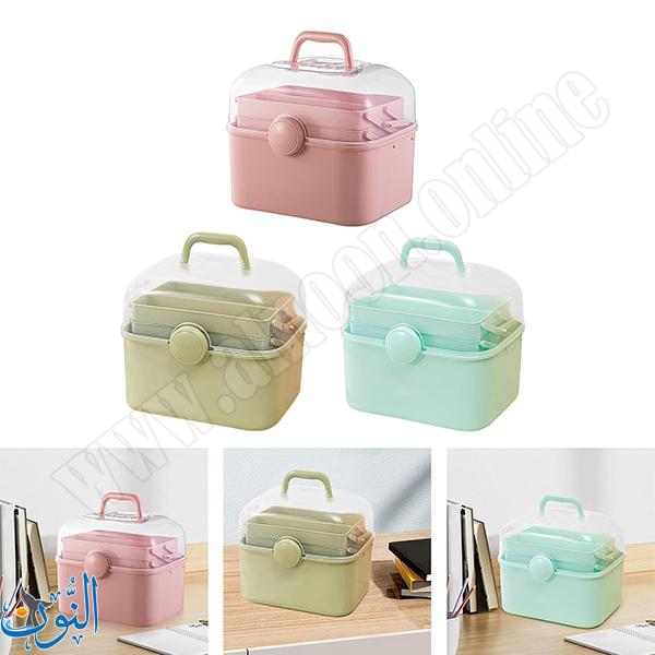 صندوق تخزين متعدد الاستخدامات من Maries مصنوع من مادة PP المتينة، بتصميم ثلاثي الطبقات مع درج داخلي قابل للإزالة لتنظيم الأدوات. مزود بمقبض علوي سهل الحمل، ومناسب لتخزين مستلزمات الفنون، المكتب، والإكسسوارات، ومتوفر بثلاثة ألوان أنيقة