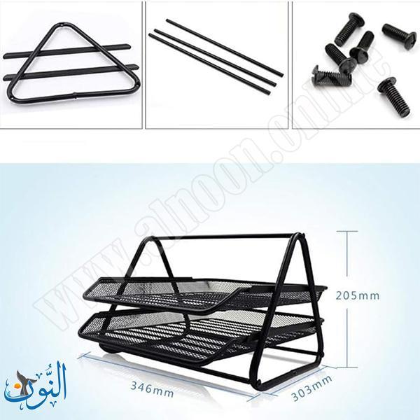 حامل مستندات معدني مصنوع من شبك حديد باللون الأسود، بتصميم مكوّن من طبقتين يوفّر مساحة عملية لترتيب الأوراق والملفات والمستندات اليومية بشكل منظم. يتميز بهيكل قوي ومتين يتحمل الاستخدام المستمر في المكتب أو المنزل، كما أنه سهل التركيب ولا يحتاج إلى أدوات معقدة. يتيح التصميم الشبكي رؤية المحتويات بسهولة وسرعة الوصول إليها، مما يساعد على الحفاظ على سطح المكتب مرتبًا ومنظمًا بكفاءة.