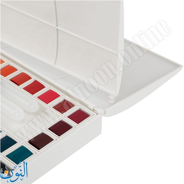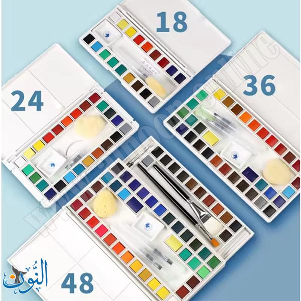طقم ألوان مائية صلبة من Maries بدرجات شفافة سهلة التفعيل بالماء، يوفر مزجًا سلسًا وتأثيرات طبقية ناعمة. تصميم مدمج وسهل الحمل، مناسب للفنانين والهواة وطلاب الفنون للاستخدام اليومي أو أثناء التنقل
