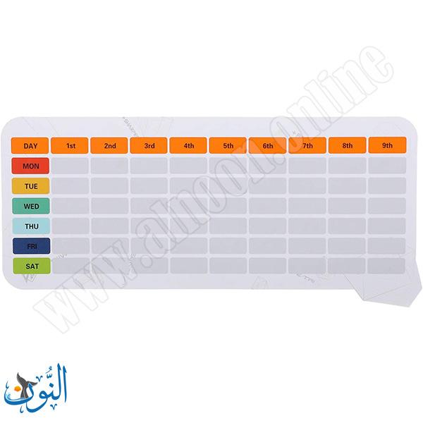طقم مقلمة مع قرطاسية 8 قطع يضم مقلمة شفافة عملية ومجموعة أدوات مدرسية أساسية تشمل محاية، برايتين، علبة أقلام رصاص، علبة ألوان خشبية، طوابع أسماء، وجدول دروس، مناسب للاستخدام المدرسي اليومي.